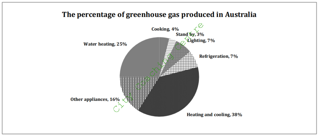 The graphs below show the percentage of household energy used and the amount of greenhouse gases produced in Australia. Summarise the information making comparisons where relevant.